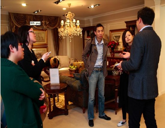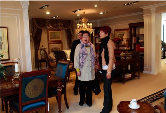 高贵优雅的王女士(左二)被FOOKYIK古典芳华的艺术家具所折服,当场下单。